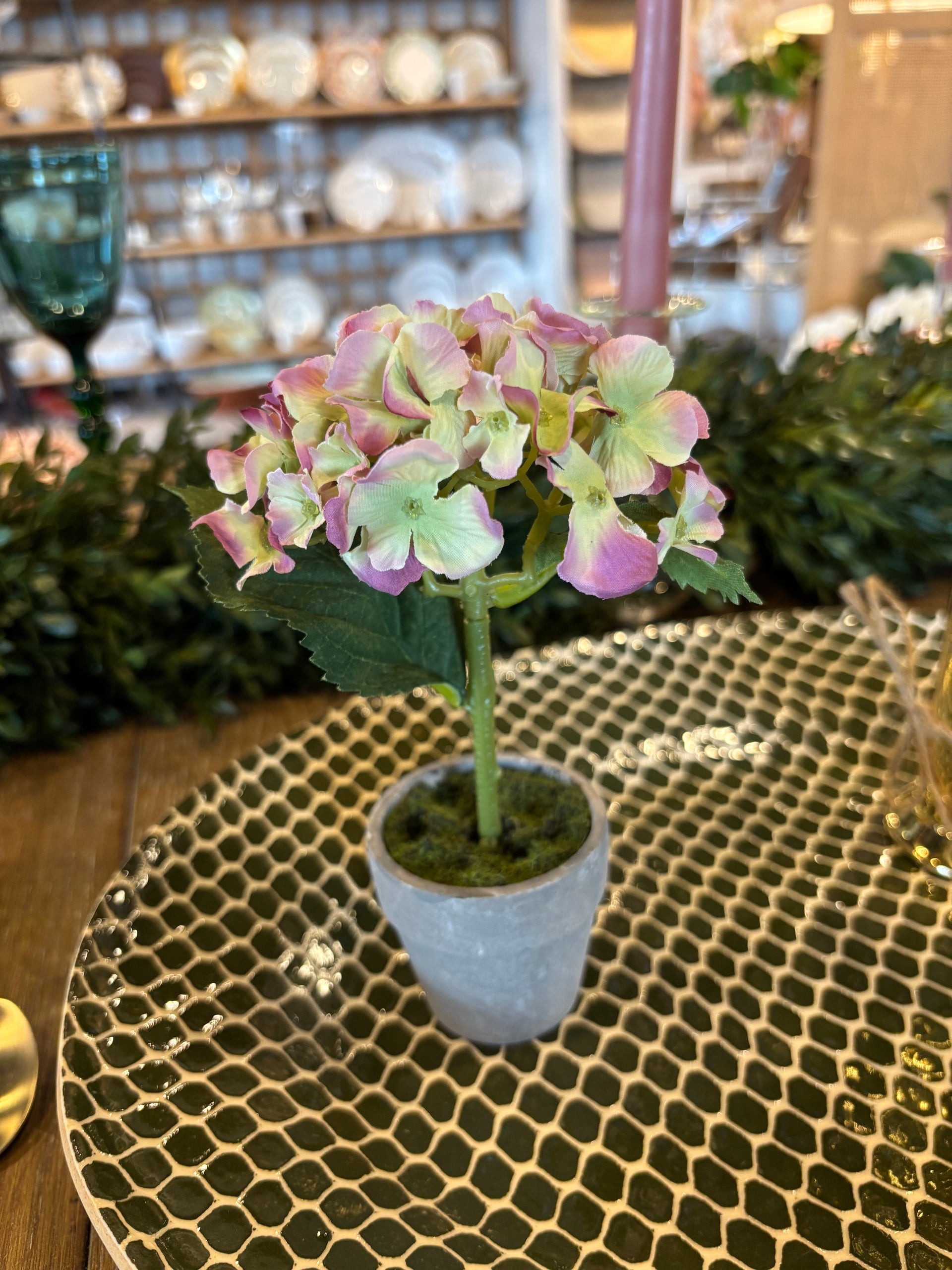 Mini Potted Pink & Green Hydrangea